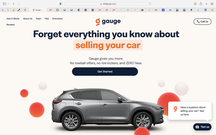 2020 წელს დაფუძნებული Gauge ეხმარება დილერებს უზრუნველვყოფს გამოსავალს, იყიდონ მაღალი ხარისხის მანქანები კერძო გამყიდველებისგან. კომპანია ამოწმებს თითოეულ მანქანას, დებს მდგომარეობის ანგარიშს თავის ონლაინ აუქციონში (StockUp) და უბრუნებს მომხმარებელს მაქსიმალურ შეთავაზებას, რომელიც არ საჭიროებს გაყიდვის ვალდებულებას. მყიდველი იხდის ავტომობილის შეძენასთან დაკავშირებულ საფასურს, რომელიც შეესაბამება ტრადიციულ აუქციონის საფასურს, ამიტომ სრული შეთავაზება მიდის გამყიდველზე და Gauge მხოლოდ მაშინ გამოიმუშავებს ფულს, როდესაც ისინი წარმატებით ეხმარებიან მყიდველს და გამყიდველს გარიგებაში.