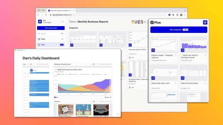 Plus New Tab – გადააქციეთ თქვენი ახალი ჩანართი პერსონალიზებულ პანელად 60 წამში. გადაიღეთ ნებისმიერი აპის ან ვებსაიტის Snapshots, ჩაამაგრეთ ისინი თქვენს ახალ ჩანართზე და თვალყური ადევნეთ ყველაფერს.