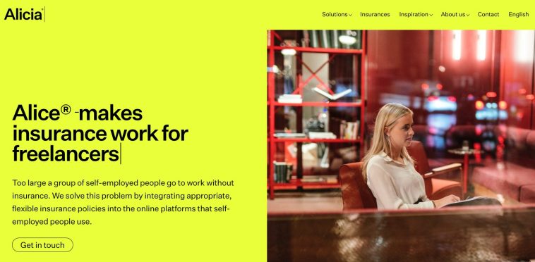 აღმასრულებელი დირექტორის მარიინ მოერმანის ხელმძღვანელობით, Alicia გთავაზობთ პერსონალიზებულ და გადახდის-გამოყენების დაზღვევას “ფრილანსერებისთვის”, რომლებიც პირდაპირ ჩართულია ონლაინ პლატფორმებში. გარდა ნიდერლანდებისა, სერვისი შემოთავაზებულია ბელგიაში, საფრანგეთში, გერმანიაში, ესპანეთსა და დიდ ბრიტანეთში.