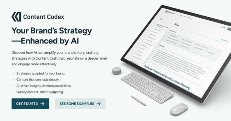 Content Codex – აღნიშნული პლატფორმის მეშვეობით თქვენ შეძლებთ შექმნათ AI-ის დახმრებით კონტენტ მარკეტინგის სტრატეგია. აუდიტორიის ღრმა შეხედულებებიდან სტრატეგიულ შესრულებამდე, ყველაფერი მორგებულია AI-ს მიერ.